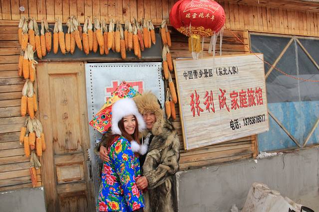 和大姐在张哥家二店门口的合影。张哥家是大家去雪乡的不二选择哦。定他家也要提前一个月,因为他家真的很火的!张哥明年就会在呼伦贝尔的恩和在开一个自己草原上的客栈了,好期待!到时候一定过去玩儿玩儿。