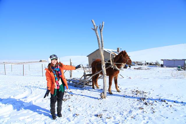 张哥看出了我对马拉雪橇的兴趣,和主人商量了一下,主人愿意拉我们去溜溜。。。结果,,,那个风啊,吹得我想死的心都有了,太冷了有木有!!!