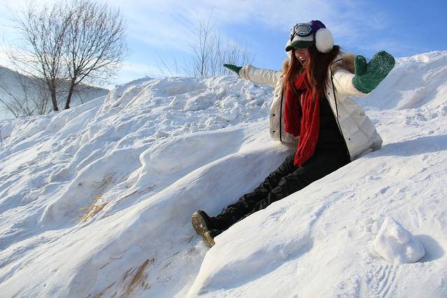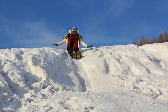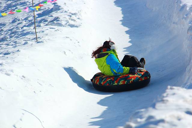 二郎河的雪全不错,有高高的滑到,自己拉着雪圈走上去,滑下来,那个刺激啊,爽翻!