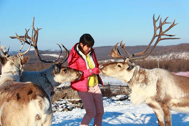 已经连续两年过年到东北了,今年放假前在想去哪玩儿的时候又纠结了,本想的去台湾,可朋友们没人同路。11月的时候看了一篇蜂首游记,内蒙的驯鹿。一下子被这萌鹿子吸引住了,马上打电话联系张哥,说我想去看驯鹿,问他要一起去吗,张哥马上答应,他也想带老婆去感受一下内蒙的冬天。人家两口子去我一个人好像有点奇怪,于是开始继续寻觅小伙伴,终于,还是把御用摄影师拖上了。