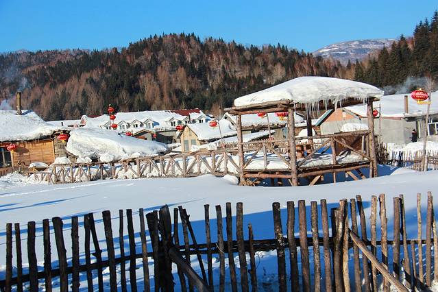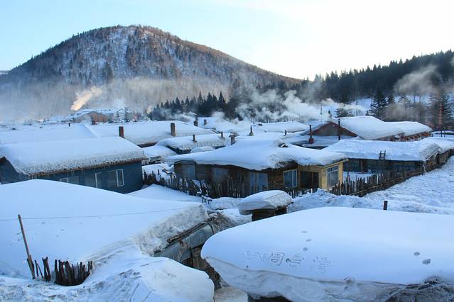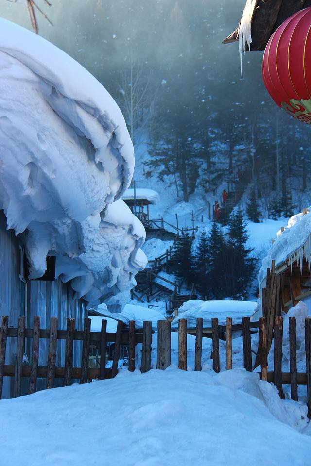 一早起床屋子里的阿姨就说你才起来啊,你朋友好早就出去了。。洗漱完小龙回来了,说一早出去拍雪乡的清晨去了,但确实没什么拍的了,现在的雪乡已经没有梦幻的感觉了。