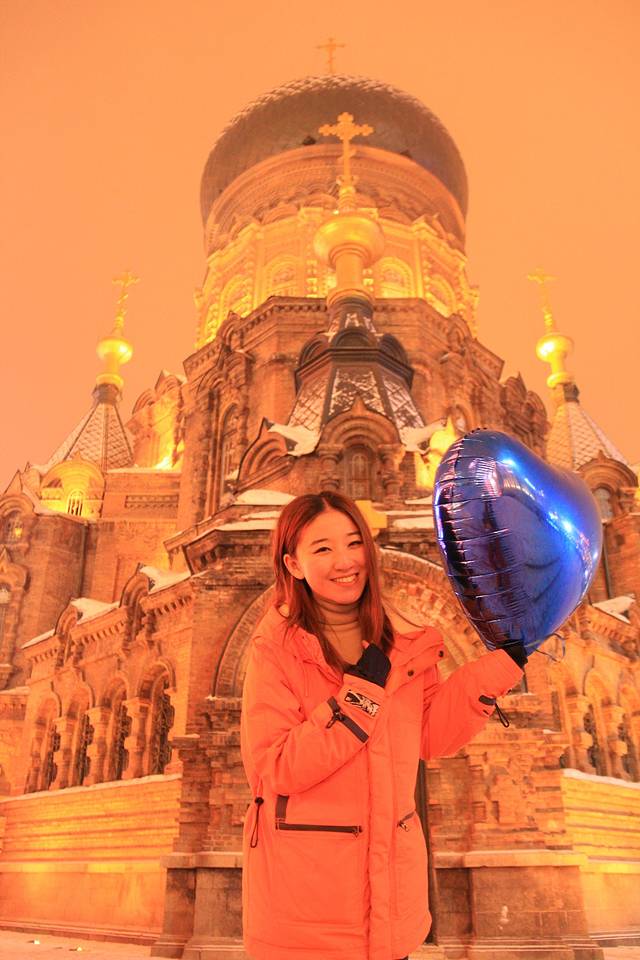 这天回来刚好是2月14 ,西方的情人节,中国的元宵,所以中央大街上也异常的热闹。