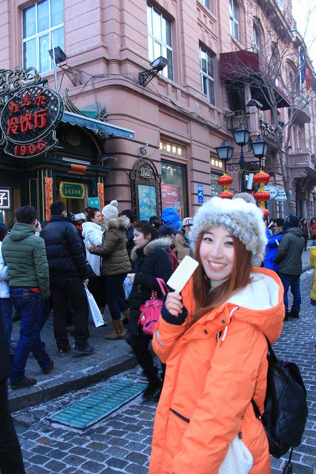 慢慢的又走回中央大家,还是人潮拥挤,但是我却要离开了,买了个马迭尔冰棍来结束我的第三次东北行。。