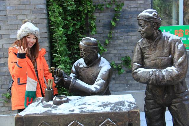 回到张哥家自己的二店,一进去张哥的姐姐说看我好眼熟,问我是不是在哪写了游记提过他们家的,我说是啊,哈哈哈,爽朗的大家马上笑了起来,说好多人来都说你是我们家的托,说是给他们打广告,我说当然不是啦,是因为上次来得到张哥和姐姐的照顾,所以才把这么好的地方推荐给大家。这是张哥也进来了,从里屋拿了几件东边棉袄给我们穿上,让我们试试,拍拍村姑去,嘿嘿,这个正合我意啊!