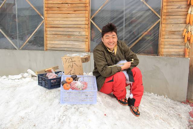 忘了多久时间,只知道在车上昏昏欲睡,被叫醒是已经到亚布力了,一下车看到红通通的冰糖葫芦就嘴馋。