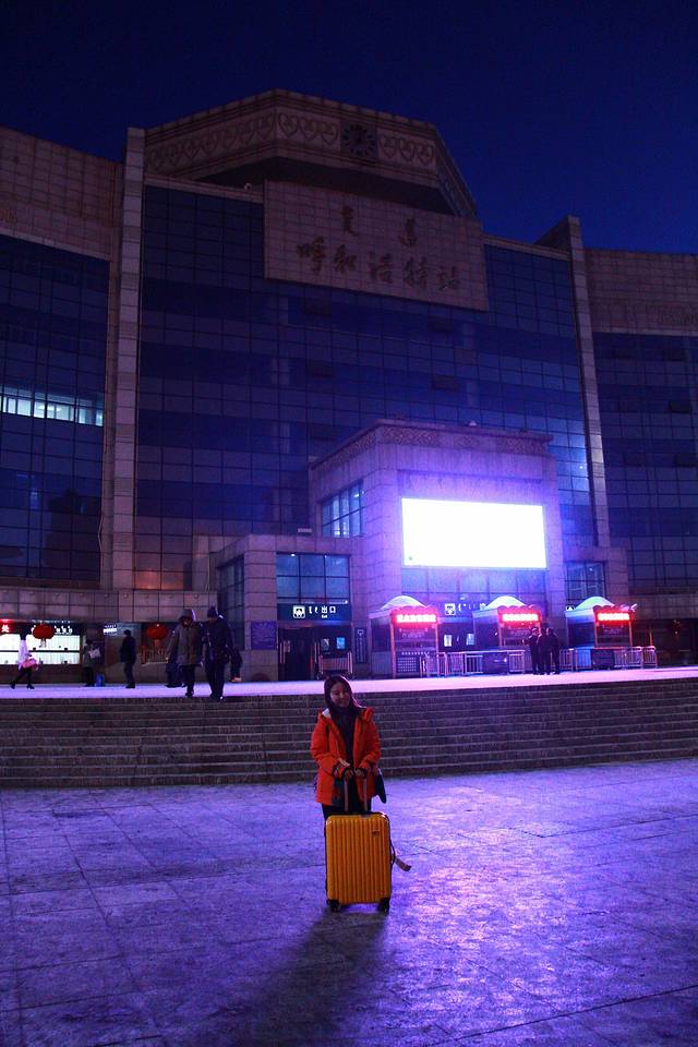 第二天一早六点过火车准时抵达呼和浩特,下火车前又加了两件衣服,下车后还是挺冷的。。