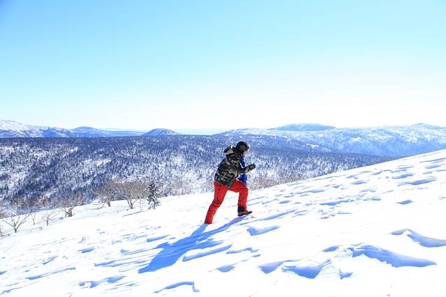 小龙和张哥还有一对父子继续前行,想山顶进发,雪越来越深,只能爬行。。