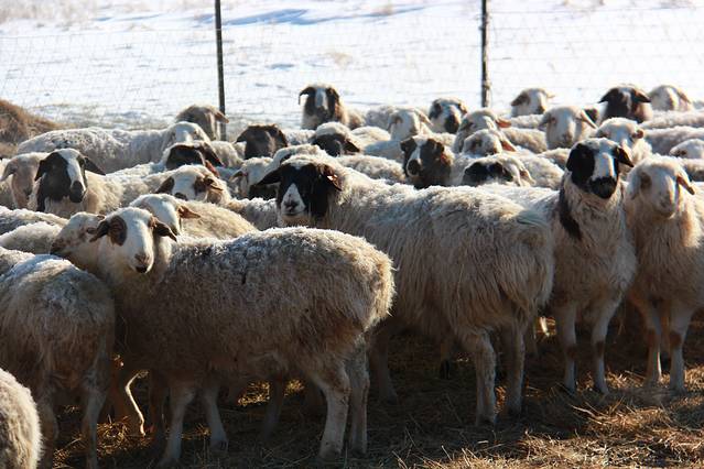远处的羊群又把我吸引住了,一走进羊绵绵们听到声音齐刷刷的看过来。