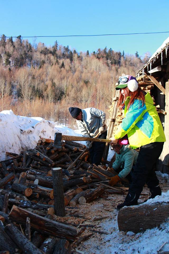 中午时分到达我们当天的目的地。二郎河。张哥说现在的雪乡已经很商业化了,这里还不错,商业气息不浓,还不是很多人知道这里,有点原始雪乡的感觉,只是没有雪乡那么大。大家一起分房睡,这里都是通铺,我和几个姐姐一起住一个炕。吃过午饭听说外面有一些娱乐设施,特别是我最爱的滑雪圈!那必须去啊。。。