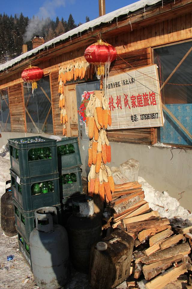 因为爸爸去哪儿的缘故,雪乡今年特别火,人一多也就意味着破坏,他再也没有我上次来时的童话般场面了。看见的都是一团乱,这个场景应该爸爸们当时早上去早餐的地点吧。