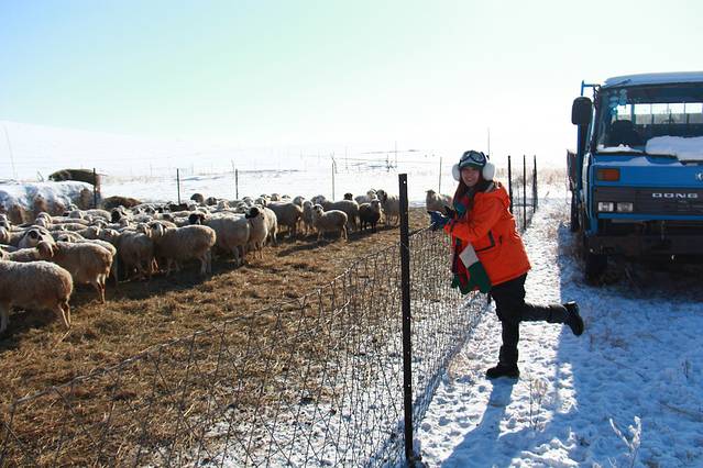 路边的羊群吸引了我请司机师傅停下来,他们刚好去个洗手间,我去和羊绵绵亲密接触一下。。