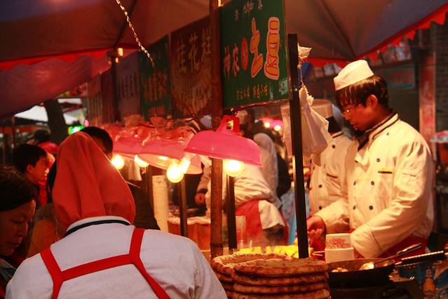回民街上摆满了小吃摊,最怀恋镜膏。