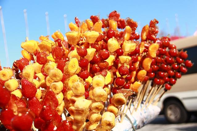 街边的冰糖葫芦生意异常火爆,挤半天挤不进去。