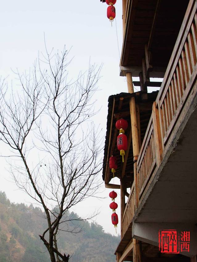 我住在杨家界入口附近的客栈,客栈很有苗家特色,只是这个季节张家界还是很冷的