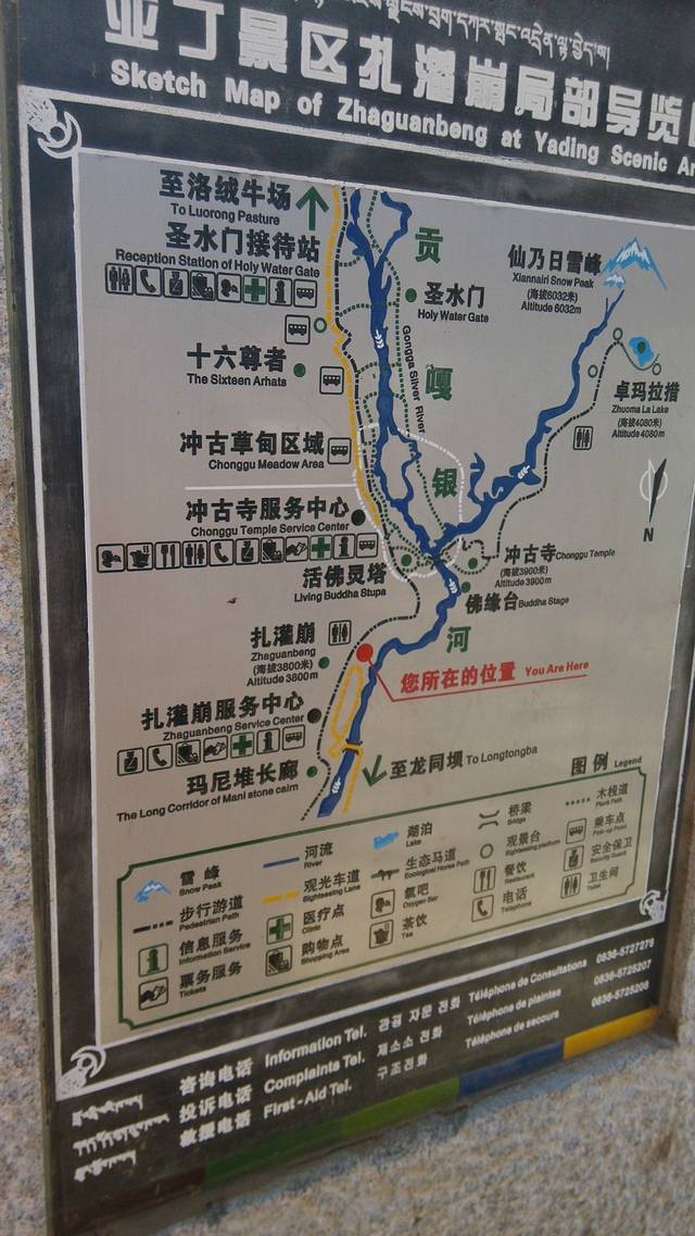 在这里看到一幅稻城亚丁的全景地图,一些有名的徒步路线比如可以从亚丁徒步到泸沽湖,还可以走卡斯地狱谷到云南香格里拉。