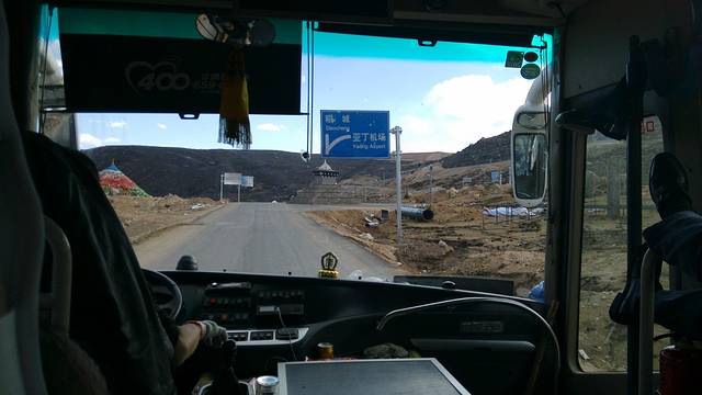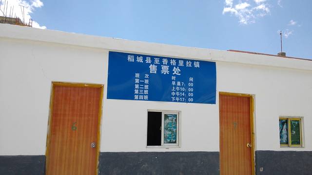 从稻城到亚丁130公里左右,公共交通的话可以在稻城汽车站坐开往香格里拉镇(日瓦村)的班车,单程3小时左右,50元,停在亚丁景区门口卖票的地方。4月份的时候是一天4班,我坐的那班下午两点半的只有我一个乘客,VIP包车阿。坐下来之前左算右算哪里不晒,开车以后发现千挑万选的位置头顶有一个天窗,太阳直射。。。路也在修,所以灰很大,坐车我觉得还好,没法想象他们骑车过去,简直要把自己变成吸尘器了。