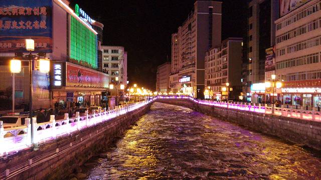 康定的夜景很繁华,穿城而过的小河以及河边的绚丽的会变换颜色的景观灯,加上各种酒店饭店商务娱乐会所,你简直不觉得这是从成都颠簸了一整天山路才到达的地方。