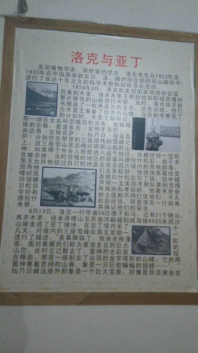 到这里才知道中国有两个香格里拉,距离亚丁40公里的四川香格里拉镇,以前叫日瓦;还有云南香格里拉,以前叫中甸。话说香格里拉这个名字为什么这么火爆,大家都抢着要呢。那也是因为不得不提到的两个人,探险家洛克和《消失的地平线》的作者希尔顿。我是在写扎尕那的时候知道这两个人的,话说扎尕那也号称自己才是希尔顿笔下香格里拉的原形,但是更多的人可能相信稻城亚丁才是原形,所以大家给这里一个称号叫最后的香格里拉。到底是哪里其实真的也无所谓,因为这些地方都很美。