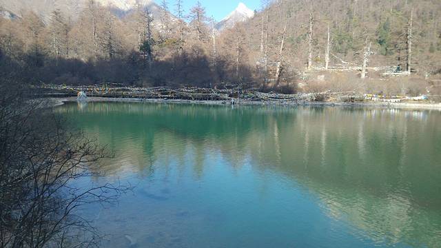 上了大巴把我们带到扎灌崩,从这里可以换乘另外付费的电瓶车或者选择步行。亚丁有点类似九寨沟,开发的部分也是Y型路线,其实整个Y型的顶部是可以连起来的,当地人转山就是这么走的。所以先走左线,我大概十一二点出发的吧,栈道很新,新修的是金属的,老的木头的,后来碰到管理人员说这边雨水太多,木头的腐朽地太快了,所以以后全部都要换乘金属栈道,提示是“金属网格栈道,请勿穿高跟鞋入内”。果然是淡季阿,大部分时间都是我一个人在走,从冲古寺走到洛绒牛场大概七八公里,我一共遇到十个左右的游客。水还很少,但是我也觉得处处都是风景,因为天那么蓝,而且心情美丽,一花一树木,一叶一菩提,就算是简单的还没有松叶的光秃秃的松树,对着蓝天看过去,竟也是一副绝美的图画。