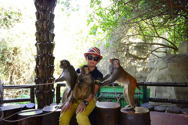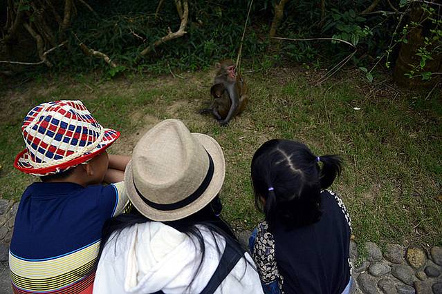 景区还有些猕猴互动与表演,免费呈现给游客看,最开心的莫过于这些小朋友们啦。