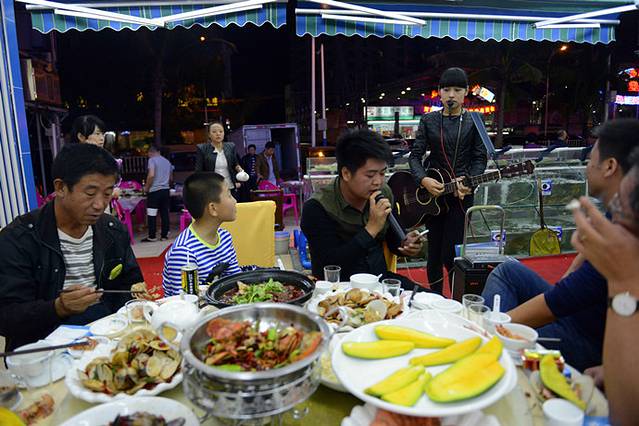 知暂的三天之旅不知不觉已接近尾声,在分界州孩子玩子沙子海水,晚上我们便直接先回酒店刷洗干净,然后在楼下天下客海鲜店,吃此次行程的最后一顿晚餐。也许是多待了两天较熟的缘故,又碰巧遇上店老板从海口做生意回来,心情大好的他还给大家免费点歌送水果等,老板的为人热情大方让在场许多游客也跟着嗨了起来,现场极度热闹。