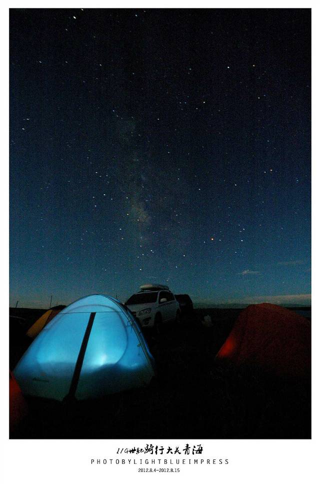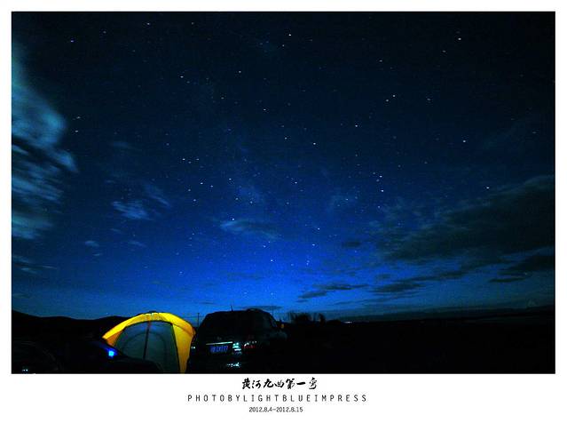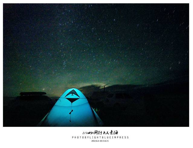 这次旅程记载了我太多第一次,第一次扎营。第一次野外煮东西吃,第一次吃高原半生不熟的面条且全部吃完。第一次晚上摸黑上厕所…… 太多太多,这些都源于的和小蓝有个约定,约定在此次旅行相依为命,为我它被日晒雨淋,为我它被冷风吹,它为我受尽了折磨,它就是俺的帐篷小蓝,在黄河九曲第一弯那天气温特别低,第一次睡帐篷,很是兴奋,满天繁星,空气清新,帐篷外在上演你是风儿我是沙的戏码,帐篷背吹的呼呼直响。小蓝给我了一个温暖的港湾。以至于我第一次露营完满成功。为了表示鼓励,特地晚上冒着大风给他拍了N多纪念照。