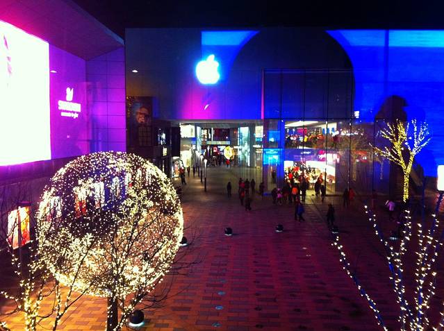 穿过马路就到了三里屯,这是第三次来这里,每次来都有不一样的感受。这次我站在AF的挑廊上,往下看,觉得满是圣诞的魔幻气息。AF有一种自己的香气,所有的店里卖出的衣服都沾染着,应该是一个男香,熟悉却不出众,但真的好闻。