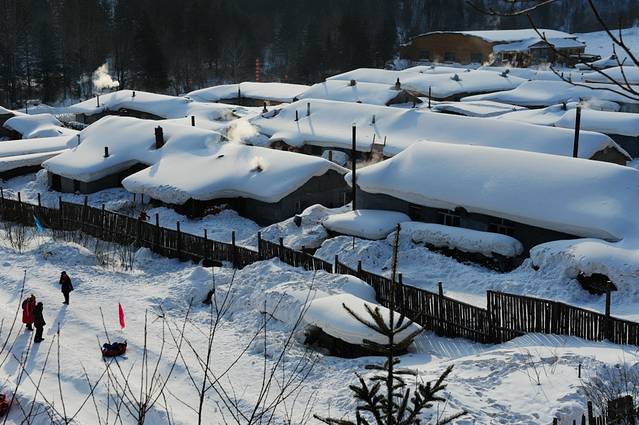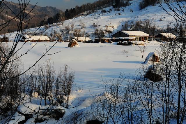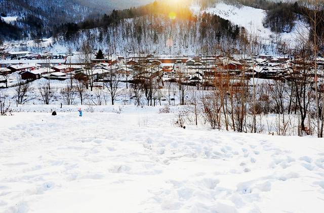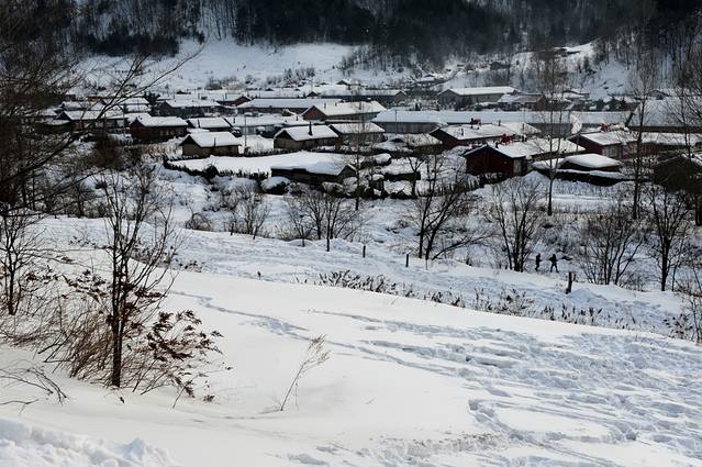 从小山坡上看到的小村子挺美的,及膝的雪。摁了几张之后就开始打雪仗,打得好认真,以至于拍出来的照片都近乎狰狞,哈哈。15:30太阳就开始落山了,余晖洒下来,近乎水墨。炊烟袅袅,仿佛能闻到太阳晒被子的味道。