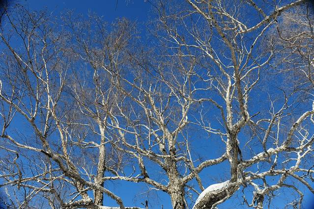 越到山顶,天开始愈发的蓝。这是原片无P的。看到树,小七就想去爬一下,整个人吊在一根垂下来的树枝上,直到树枝被吊断了,掉在雪里这样的事儿我会乱说。这种,是最原始的快乐吧。然后小七和ING就捡起掉在地下树干扭打了起来,我还拍了很不错的一组pic。