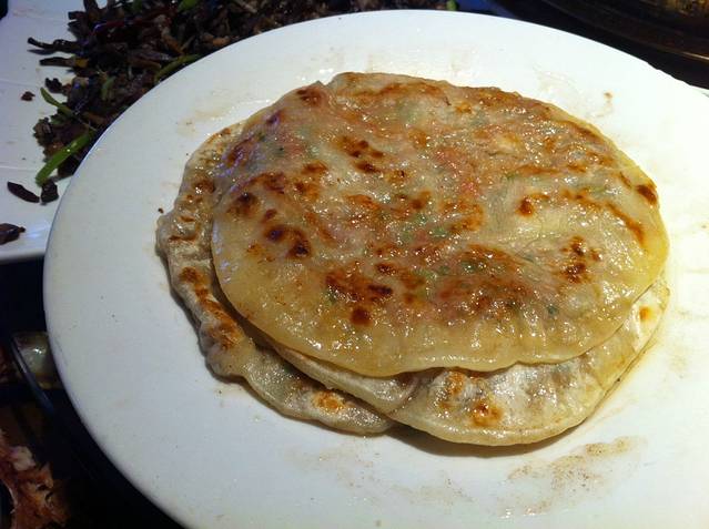 午间,第二顿,小七说,你来的主题就是吃~后来,对于我的食量,小七已经把我归为“试吃”。中午上菜之前就上了一堆的奶制品,比如一锅奶茶,里面泡上奶皮子,还有矫口,是一种稠奶呼呼,拌上一种像小米一样的东西吃,还有包着豆沙的奶皮饼,外面粘着小米物。当我尝遍这些东西已经大饱。然后才刚刚开始好么,羊排、羊杂、土鸡蛋炒苦瓜、血肠、大拌菜好多好多。。。吃到图硬菜不能。最后被问,还要点儿主食么。按照小七的理论就是主食不完,饭就算没有吃完。上了10个内蒙馅饼,可能有15cm直径的饼,薄薄的油乎乎的饼包着油乎乎肉墩墩的馅儿,成为真是千古绝唱啊。就像小当家中,流着眼泪发着光,等待食物的进程。到现在,图还对那张馅饼无比的想念.