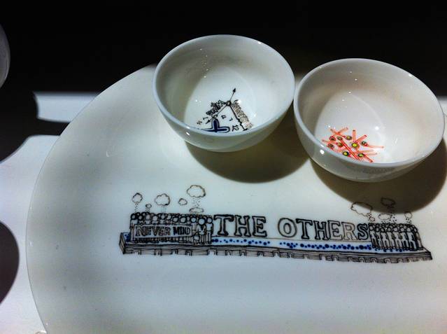 小七的家乡盛产麦饭石,听说有各种奇效,第一年小七背了个巨大的杯子回去给LD,LD每天都用它喝水,直到年后。这又是一个背回去的路程也算是心意的礼物。为了消食和为晚饭做准备,我们就一家家店的逛那条街,都是一些硕大的工艺品,茶壶茶杯组,手工笨拙粗放,看到一些小茶盏,配茶壶,小巧却不单卖。后来在有一家看到大小颜色各异的四个,便问这单卖不。20块一个。我和小七说,小七,我忘了带钱。小七便帮我买下了那个杯子。那个杯子一直被揣在我的口袋里一直到雪乡,而之后的一路图都拿它来接水刷牙,而今在家,图用它配一个奶罐儿来喝铁观音。杯、盘是图最喜欢的两样家居用品,家里有各种大小、花色、材质、形状的杯盘,永不嫌多。单位里的猫杯也是阴错阳差中给我的,每次看着那只抱着红心的小猫就会想起勒勒和我说的有关其无法挽回且无法告别的故事,也不知道是什么样的心情,图知道勒勒想告诉我什么,一直都知道。