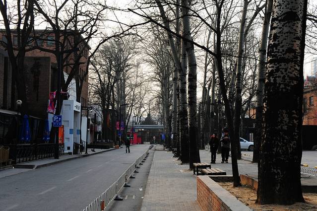 于是我就沿着一根与步行街垂直的小胡同走进了里面,和步行街offset的街就立马市井了起来,大喇叭叫嚷着买帽子耳包,再往里点就是一帮卖烧饼、卤煮和煎饼果子的小摊儿,卤煮放在巨大的锅贴锅子里,除了白色的面饼,其他部位都无法辨识。我听太多的人给我推荐过这个,我胃里一紧,便作罢。但天却特别蓝,看着胡同两边很多没开门回家过年的店店,却因为有了点真实感而高兴了起来。再往南走就走到一片说是台湾风情区,都是重新造过的胡同,已经没有了胡同的肌理,有点像新天地的格局,胡同里面哪里有开放空间的小广场?反正也是没有人,空寥寥的,感觉自己的时间在流淌和荒废,于是决定快点去鲜鱼口走走。走出前门区,我长长的吐出了一口气。