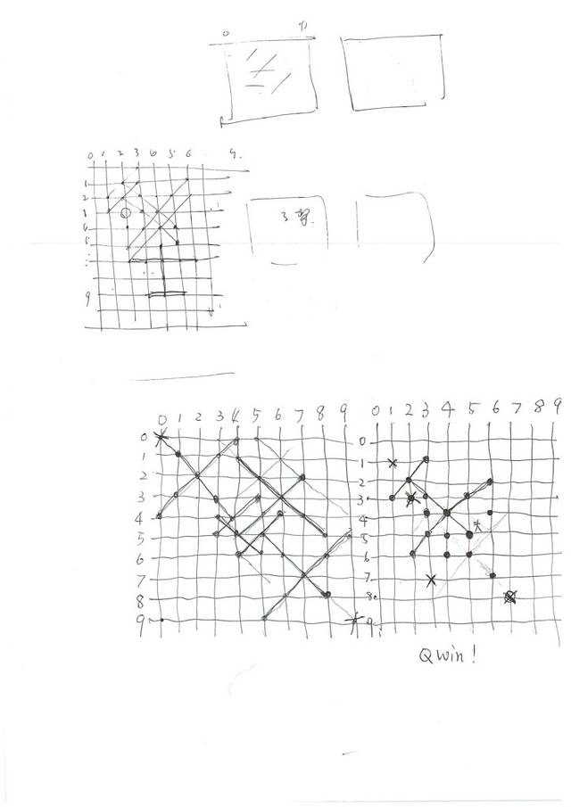 车上玩了个特别无聊而有意思的游戏,打飞机,每一盘大家都几乎能杀掉30min。大家在9x9的方格里藏三架飞机,一人一枪的打对方,打中机头的飞机就死了,最快打掉对方飞机的就算赢。小七赢了一盘儿,图赢了两盘,然后小七说再来一盘。小七赢了,然后小七就说,太费脑子了,头疼休息一会儿。。。
