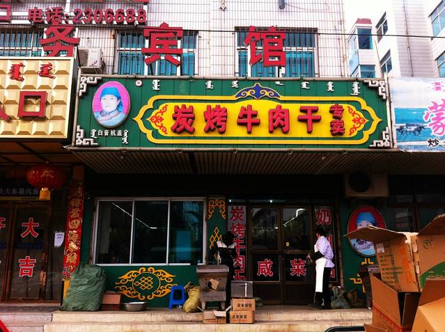 因为LD和董事长夫人的旨意,我们肩负着要去买牛肉干的艰巨任务。白音杭盖,是当地最好吃的牛肉干。小七说,她孙子是自己的小学同学,我们也戏说要让小七去搞来碳烤牛肉干的秘方,否则就不许回SH。说的夸张点就是人可能不知道奈曼,但不会不知道白音杭盖。100块一斤的牛肉干,非常非常的值回价格,后来也是这些牛肉干,陪我们度过了在零下35度的严寒里面穿越的7个小时。