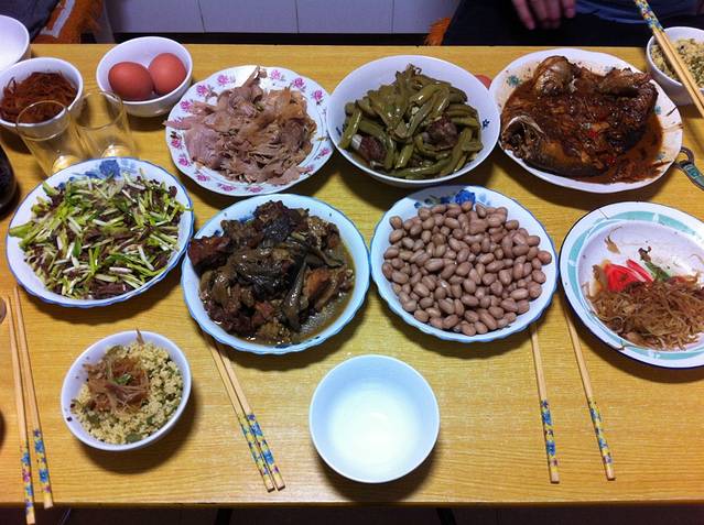 下午,看到有豆角,图就很兴奋地说要做豆角饭了么?因为有次在Ing家做饭的时候,小七承诺要做豆角饭,图把两把豆角切得薄如蝉翼细如发丝,后来小七又赖皮不做了,所以一直对豆角饭耿耿于怀和充满向往。小七就去和七娘扭动了一下,晚上就真的有豆角饭了。豆角、小米和肉丁蒸出来饭,蓬松完美。晚上生日的人要吃一个白煮蛋,是习俗。晚上有小鸡炖蘑菇、小七最爱的剩土豆丝、豆角炖排骨、酱肘子、红烧鱼还有蒜苗炒肉丝,虽然当地的蒜苗居然是韭黄,但是巨好吃啊。所有的菜都为了适合图的口味调淡了一档,我已经对这点表示感觉很sweet了~
