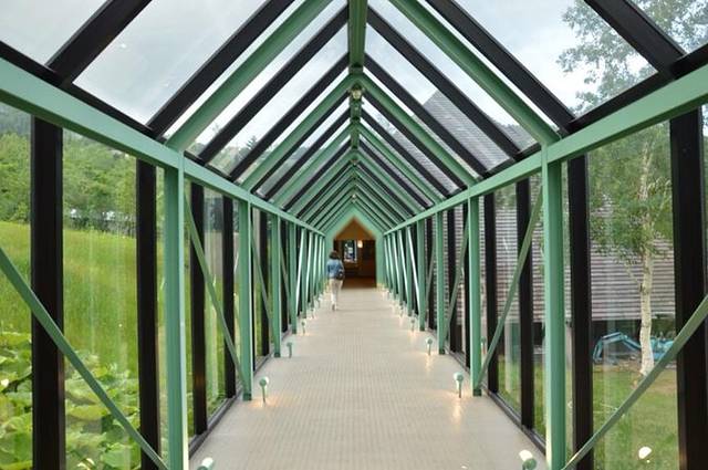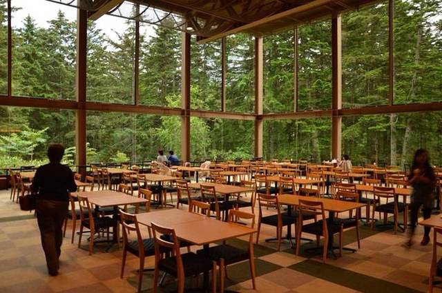 安顿好后,两个饥肠辘辘的人立刻出发去觅食。出门沿着通道不远就是森林餐厅(二ニヌプリ),通道四周都是玻璃,既可遮风挡雨又不影响沿路观景。