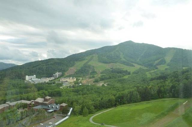 在THE TOWER下了车,酒店的服务人员一窝蜂地来迎接,个个都是帅哥,穿着西式WAITER的衣服,热情得让人恍如身在牛郎店。在前台CHECK IN后得到了25楼房间的钥匙,房间居然是四人间,这是本次北海道之旅住得最宽敞的一间房,四周都是大窗子,度假村的群山苍翠尽收眼底。