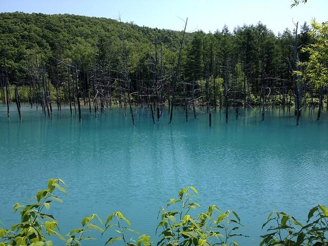 青池是我纠结了很久要不要去的景点。美瑛去青池的巴士很少,间隔时间很久,到了之后不到一小时就要坐车返回,否则就要等上三小时才有回去的巴士。来回40分钟的路程只待不到一小时是不是值得,带着这种疑问和对IOS7默认壁纸的憧憬,我们还是坐上了去美瑛的火车。