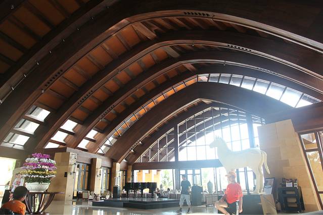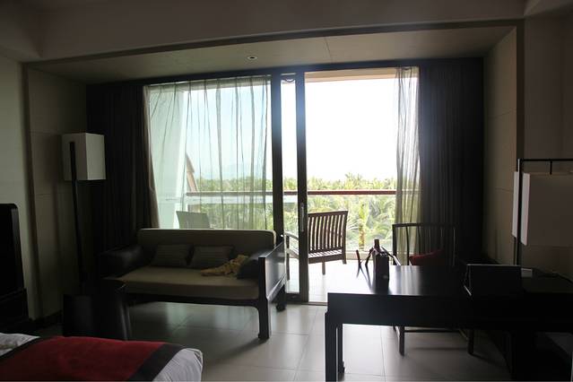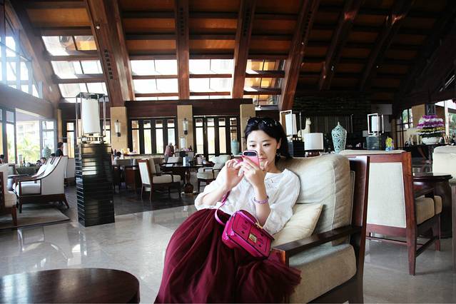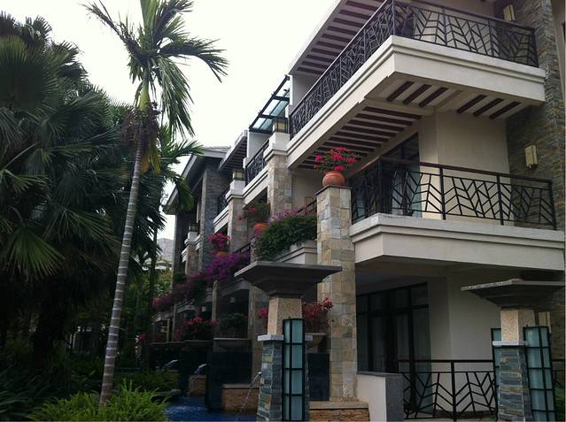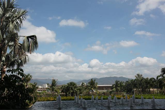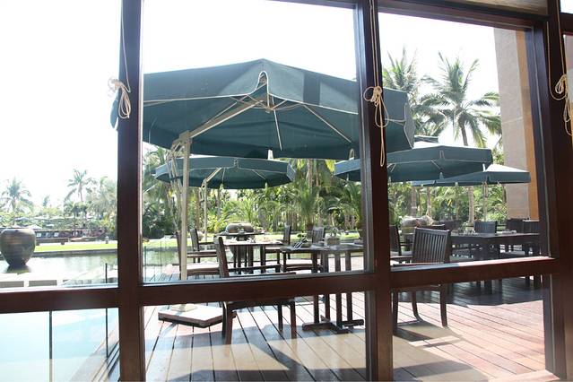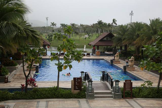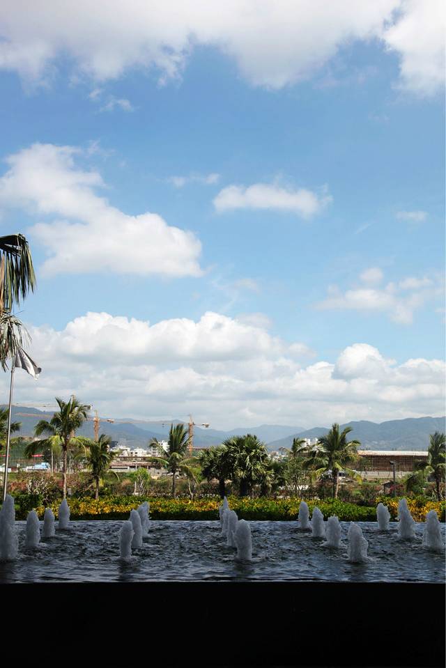它紧挨着亚龙湾的高尔夫球会,绿化环境真的是很棒,虽然不临海,可是整个酒店就像是一个花园,绿化面积挺广的。酒店面积挺大的,分为好几个区,酒店自身也提供自行车租赁服务,如果是家庭出行的话,完全可以租一个家庭三人自行车,在酒店里闲晃,不说谎话,真的很棒很美。我和冰哥有两个早上,都在酒店里闲逛,走走看看拍拍,觉得节奏都慢了下来,很满足。