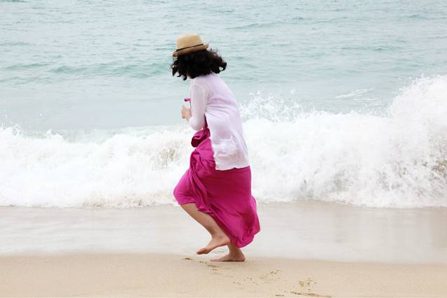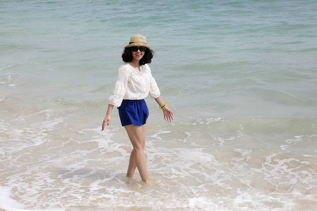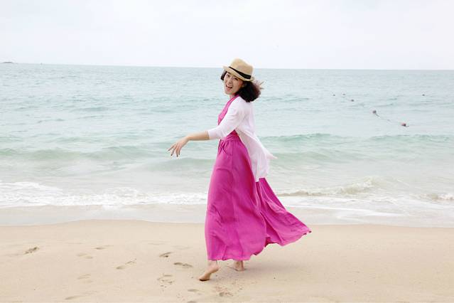3、去海边不要穿拖地长裙,我的湿到大腿,难受死了。