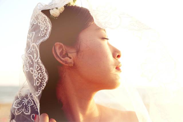 很简单,我就带了一条白裙,头上的头纱50元买的,还有花环是10几块钱淘宝买的!