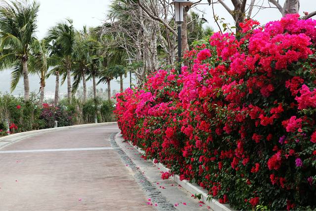 从维景国际酒店去往各个地方,都要经过这样一条弯弯曲曲的确是鲜花簇拥的小路。小路不宽,但两旁却是鲜花相伴。我可以任意在这里拍照,撒欢。