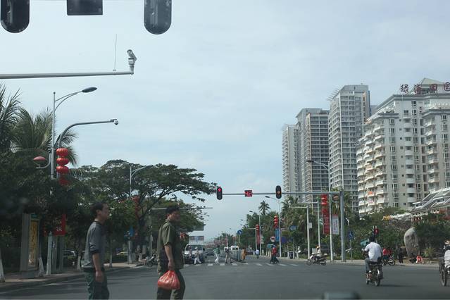 5、这个时候,我们已经有车了,所以纵然亚龙湾距离三亚湾再远,也不怕了,然后我们就驱车前往三亚湾了。去往的路上,会经过三亚的老城区。当然也会路过大家熟知的海鲜第一市场。
