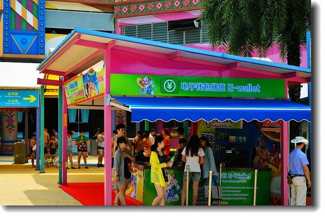 @广州长隆水上乐园 里配套设施很齐全,小卖店、各种游泳用品,带着钱不方便,还可以充值电子货币,手镯套在手上,非常方便;更衣室免费使用,内有厕所,电子匙保管箱,20元/个,里面空间很大;园内电子屏幕会显示水质状况;餐厅遍布园区,价格有点高;每个下水点,有简单的物品摆放点