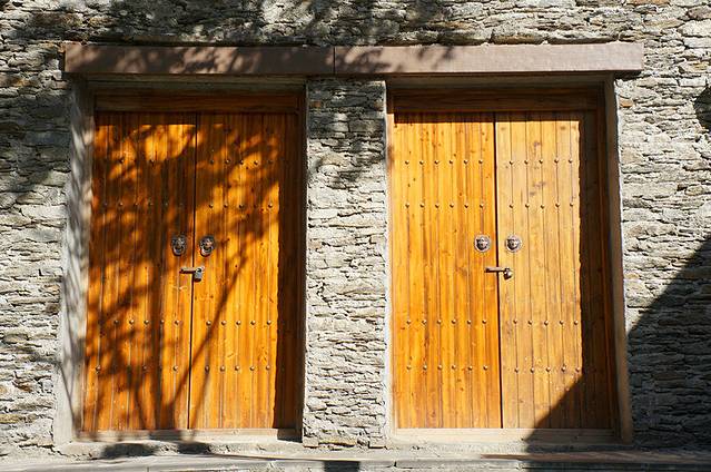 紧锁的大门。早晨的阳光照射着,能感受到它的沉淀。
