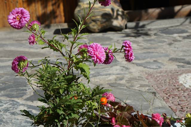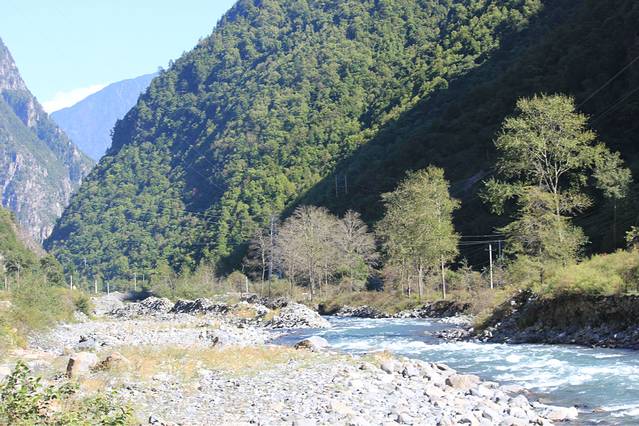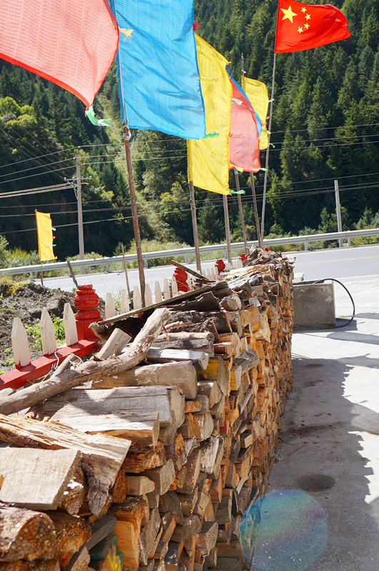 中午左右到达理县,太阳好到不行,我们开车前往米亚罗镇,想看看沿途的叶子红了没,一路上还是遗憾了,时间没对,山上都是金灿灿的黄叶。于是大家在往理县回途的路上找了一家农家院子吃午餐。