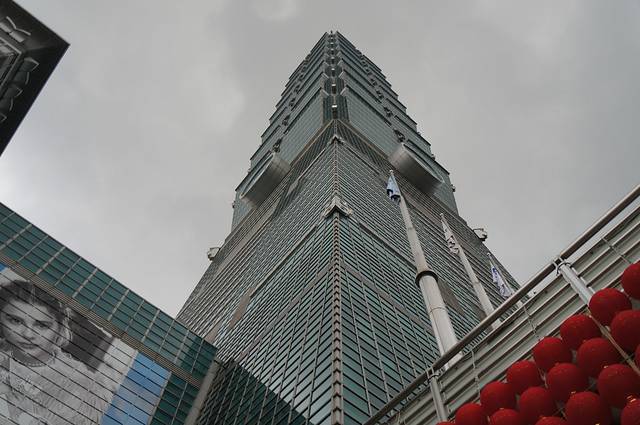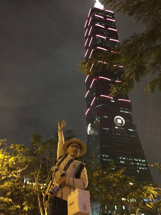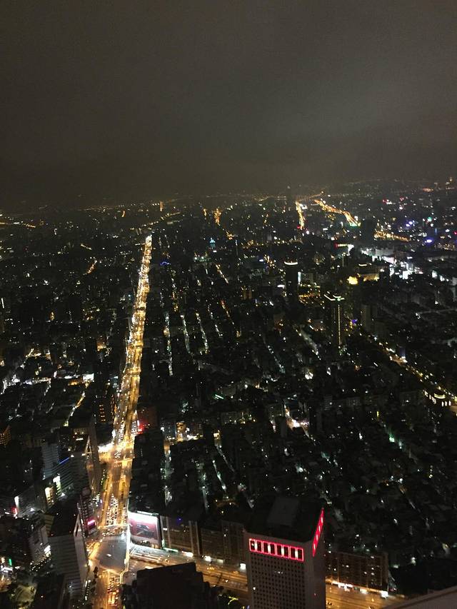 101大楼,外貌以竹为设计的大厦,作为台湾的地标,1—4楼被设计成购物中心,大楼中还有一个重800吨的悬浮阻力大圆球,是全世界建筑史上最大的阻力球,主要用来保护大楼在强风中也不会大幅度的晃动,101大楼的另一个记录是电梯的速度,由1楼到89楼观景台只需要39秒,是世界上最快的电梯,所以我们欣赏了现代化的建筑美学。天妈在网上预订好了门票,可以预订好时间,直接去了,看见大厅密密麻麻的人群在排队,就偷笑啊,我得意的笑,我得意地笑。