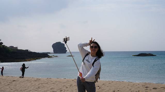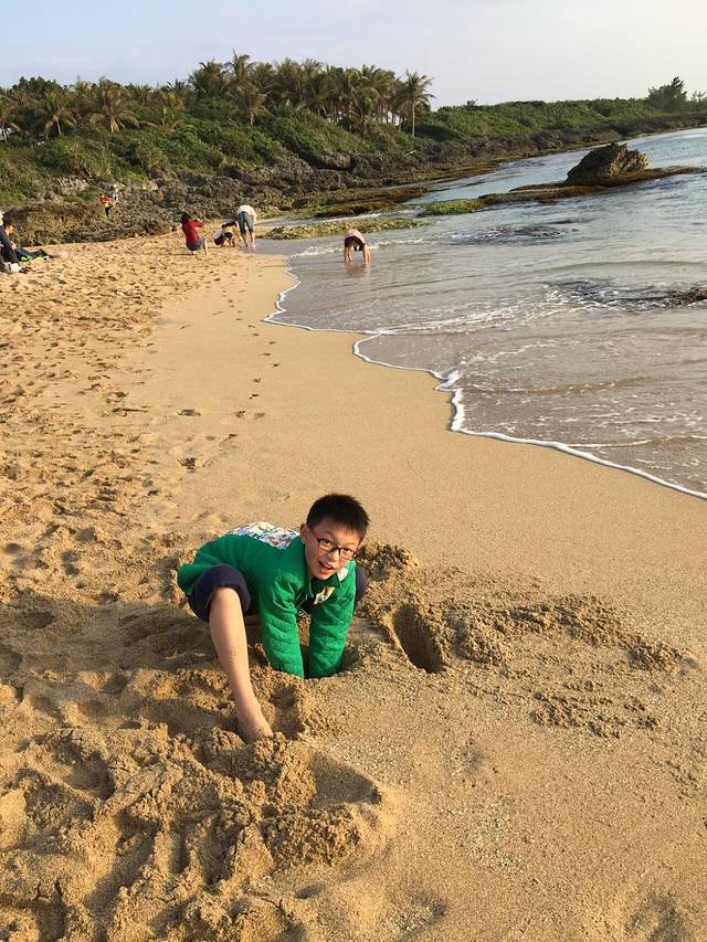 吃海鲜一定要去后壁湖报道!后壁湖渔港是恒春半岛最大的渔港,新鲜的鱼多种多样,价格更是实惠,厚切生鱼片仅台币100,生蚝、海瓜子等等吃到过瘾啊,许多本地人都会来这里吃海鲜,我们选择了网上好评的辉哥生鱼片,通过强大的Google maps导航,一路畅通无阻啊。提醒大家,这个软件是一定要下载的。吃好后,我们开着电动车回民宿,头顶是像钻石般闪烁的繁星,再加上海浪拍打沙滩的声音,我们大声的唱着歌啦。