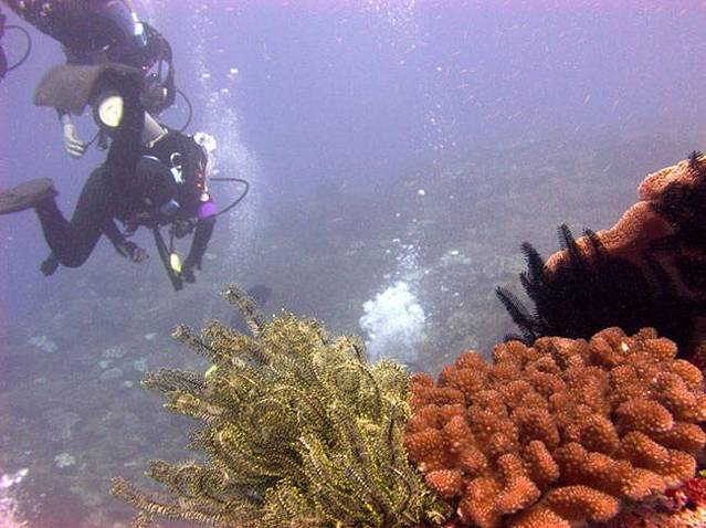 一滴大水珠挡住了天妈的脸,呵呵,我们下海前背氧气瓶的时候,海岸边有许多大陆的旅行团在旁边看着,都想尝试体验,但是他们没有时间,没有自由,只能在岸边呆着,无比羡慕的看着我们入海,我想:这就是自由行走的好处吧。