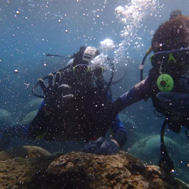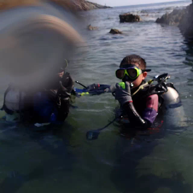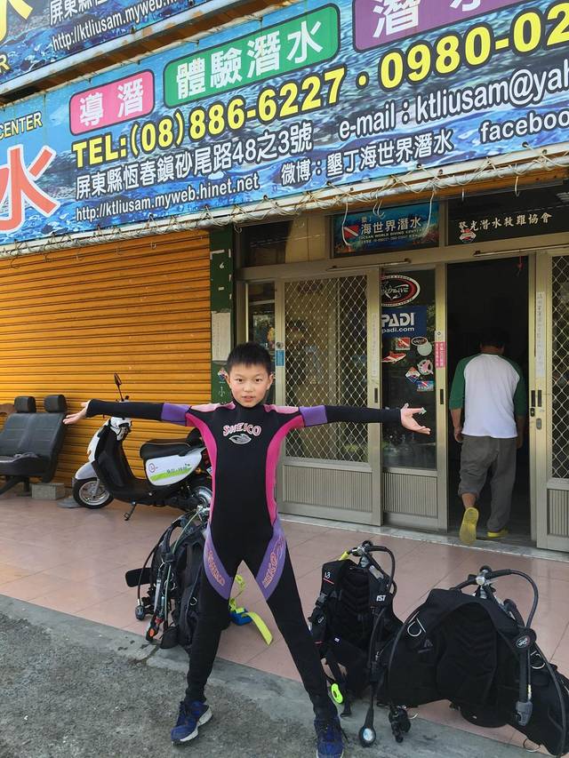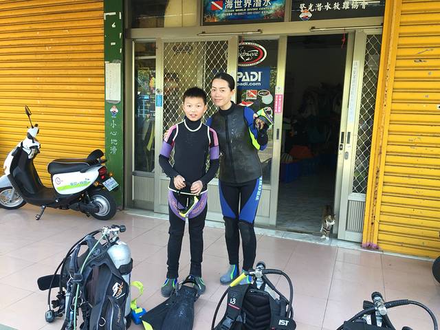 穿好潜水服,就坐着小卡车去后壁湖的路上,天同学很兴奋地说,我要唱歌哦,然后扯着嗓子唱歌,我仔细听了听,居然是站小的校歌,我的妈啊,站小的渗透教育抓得好哇。